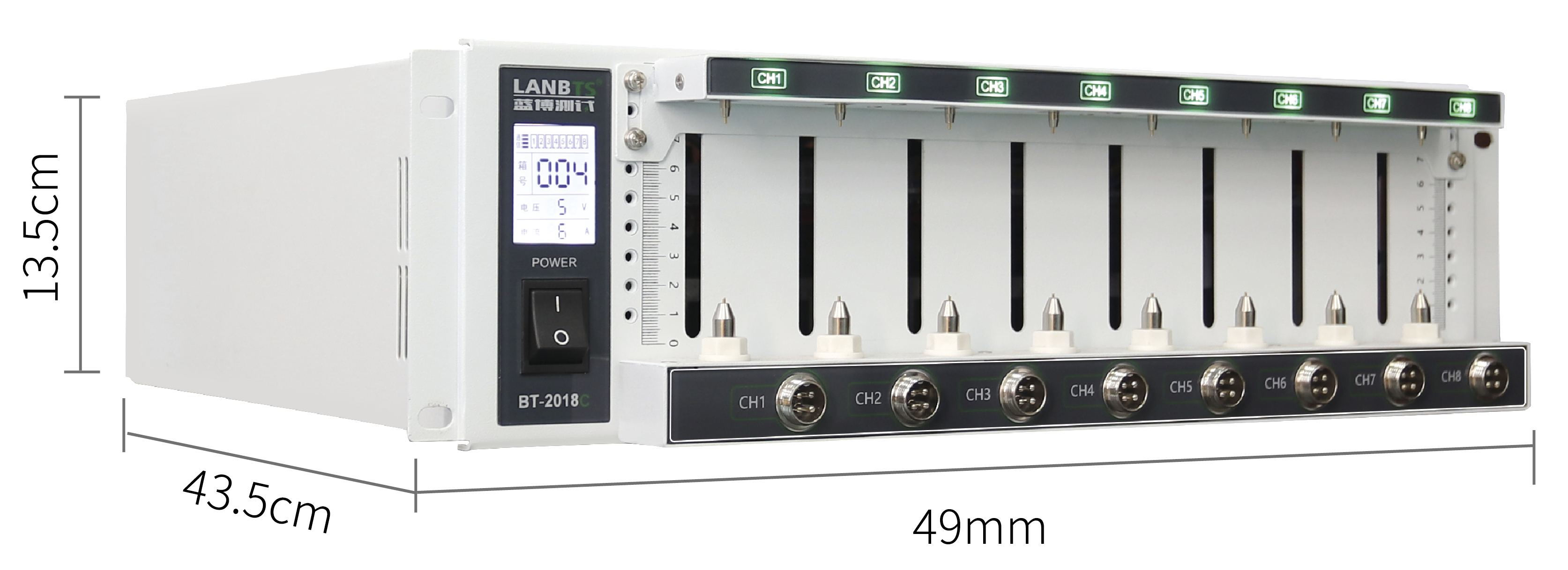 1、前面板既有四線制頂針夾具,也有航空插頭,兩種接口的應(yīng)用能滿足絕大部份電池的接入測試;