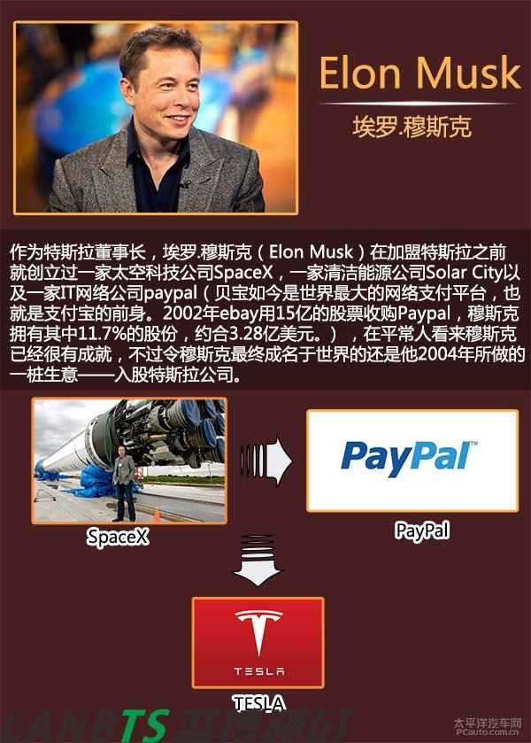 2003年7月1日,馬丁·艾伯哈德與長期商業(yè)伙伴馬克·塔彭寧合伙成立特斯拉(TESLA)汽車公司。但由于艾伯哈德毫無這方面的制造經(jīng)驗,最終找到AC Propulsion公司。在AC Propulsion公司CEO的引見下,穆斯克認識了艾伯哈德的團隊并向TESLA投資630萬美元,最終出任公司董事長、擁有所有事務(wù)的最終決定權(quán)。但是后來由于艾伯哈德與高層管理的矛盾激化,于是被迫要求離開公司,他本人只作為特斯拉公司的一個股東存在。而穆斯克當(dāng)任董事兼CEO全面掌握了特斯拉并帶領(lǐng)著特斯拉走上了一條汽車革命者的道路。