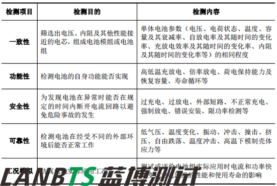 鋰電池檢測項(xiàng)目主要包括一致性、功能性、安全性、可靠性及工況模擬等五個(gè)方面。